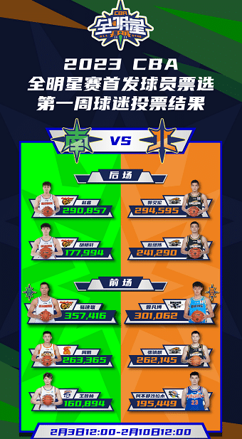 360直播讯02月14日距离2023年CBA全明星还有40天的时间,目前CBA全明星的投票环节在如火如荼地进行着。本届全明星将会在3月24日开幕,3月26日结束,地点是厦门凤凰体育馆。球迷们投票的时间是2月3日12时-2月23日12时,媒体代表投票时间为2月13日12时-2月17日12时,最终结果将在23日16时正式出炉。
