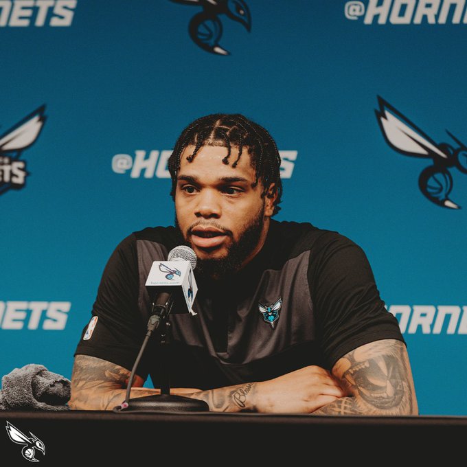 360直播讯07月19日,黄蜂正式为迈尔斯-布里奇斯召开新闻发布会,布里奇斯为自己的家庭暴力行为道歉,这是他一年多以来首次在黄蜂球馆的发布会现场公开亮相,他已经离开球场很久;黄蜂总裁透露决定与他签约原因,布里奇斯承诺绝不再犯。