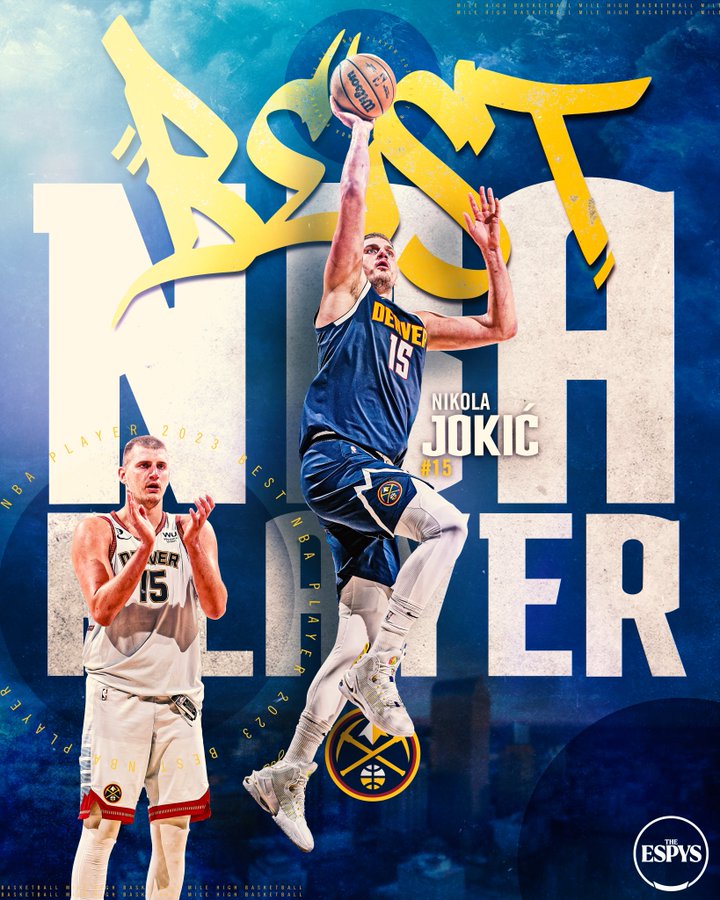 约基奇全票夺得西决MVP、总决赛MVP并且带队夺得队史首冠,如今约基奇又获得ESPY最佳NBA球员奖,约基奇击败了巴特勒、恩比德和塔图姆。