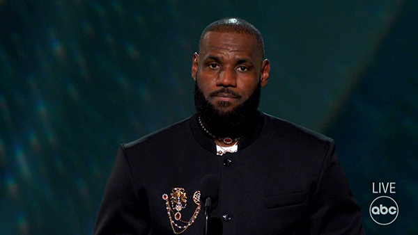 詹姆斯获得ESPY年度最佳破纪录大奖,萨瓦娜祝贺詹姆斯时不小心爆粗口,朱莉提醒自己的妈妈,现场观众起哄,之后萨瓦娜改口夸赞老詹。