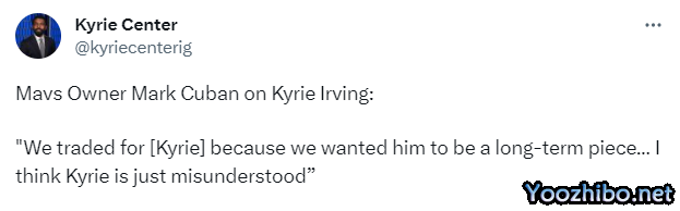 谈到欧文经常遭到外界舆论的质疑,库班表示:我认为欧文只是被误解了,我听到了外界的那些质疑声。但是我很喜欢他,他很开朗、聪明,总是在学习一些新事物,他是个有趣的家伙。