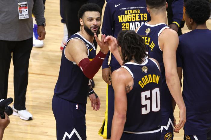 掘金众将带队夺得冠军点,赛后约基奇夸赞戈登帮助他们拿下比赛,小布朗盛赞穆雷今天是控卫之神,戈登、小波特都夸赞约基奇,不得不说,掘金全队的氛围太好了,这就是冲冠球队该有样子,他们距离捧起奥布莱恩杯仅仅只差1场胜利。