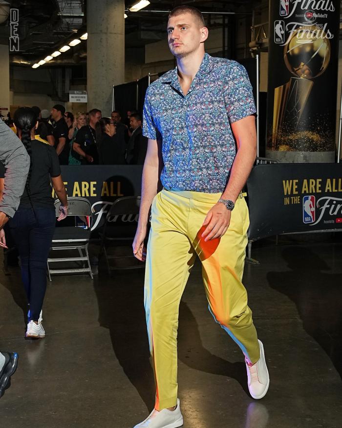 G4赛前,约基奇身穿西装裤和花衬衫出境,一脸严肃仍帅气十足;穆雷、小波特等人则穿得十分休闲;掘金众将都是一脸严肃的表情,这就是他们对待G4的态度。