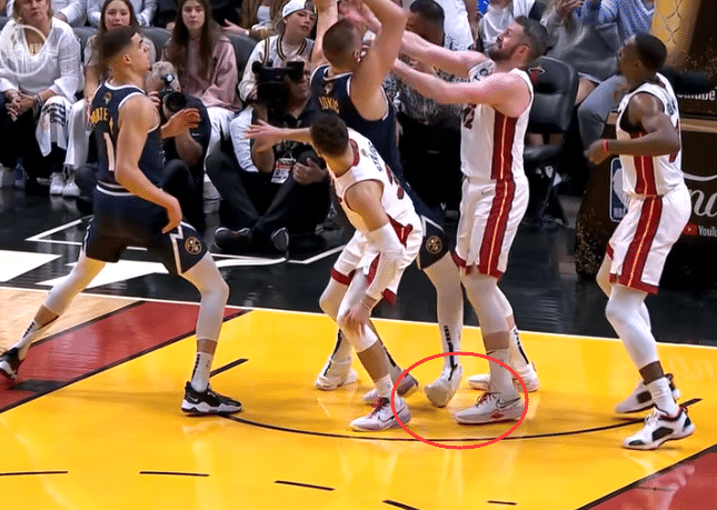360直播06月10日,NBA总决赛掘金和热火G4正式打响,约基奇第一节不幸崴脚,绑紧鞋带忍痛坚持比赛;掘金和热火第一节打得十分激烈。