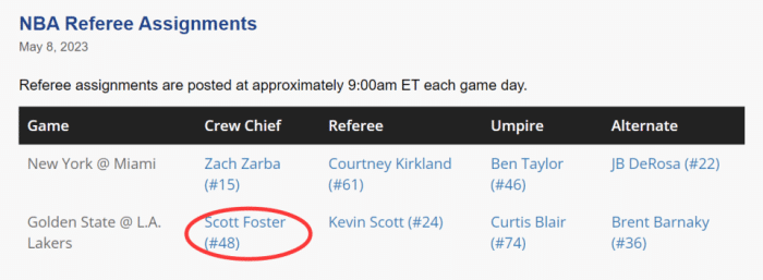 360直播05月09日,NBA官方公布了湖勇大战G4的裁判阵容:主裁判是斯科特-福斯特,另外两位裁判是凯文-斯科特和柯蒂斯-布莱尔。这轮系列赛的罚球问题经常被谈及,裁判自然也成为被关注的目标之一。从本赛季的执哨战绩来看,主裁是福斯特,似乎更利好湖人。本赛季至今,福斯特执哨的常规赛,湖人4胜1负,勇士1胜3负。
