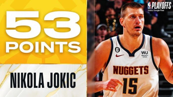 在这场G4的比赛中,约基奇轰下53分11助攻,得分创个人季后赛生涯新高。53分也创造了掘金季后赛队史的得分纪录。约基奇还是NBA历史上第一位在季后赛拿下得分助攻50+10的中锋球员。