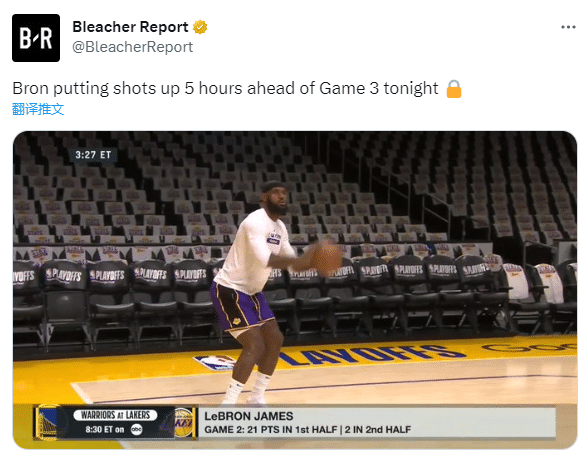 在湖人首轮G6淘汰灰熊时,老詹就是提前5个小时进行训练,最终湖人40分大胜灰熊;湖勇半决赛G3,38岁詹姆斯又是提前5个小时来到球馆备战比赛,这凸显出詹姆斯的赢球态度和决心。