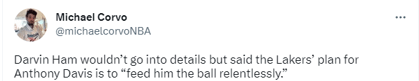 哈姆还透露G3一战,湖人对浓眉的计划是不断地把球传给他。