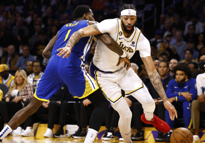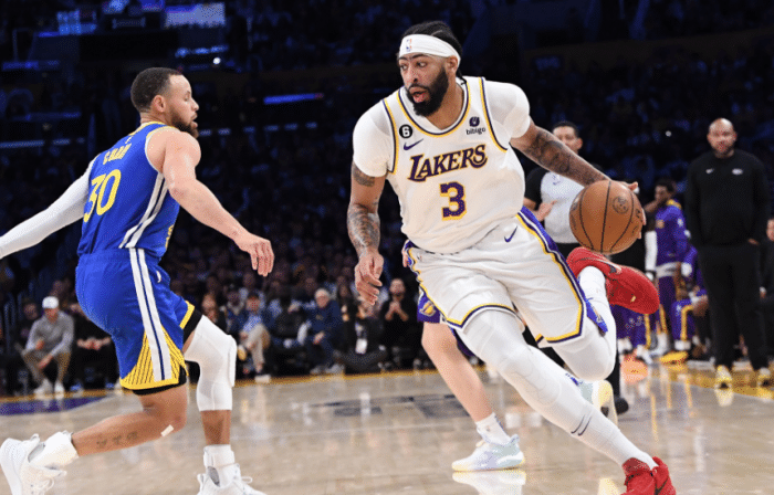 360直播讯05月07日,NBA季后赛湖人主场大胜勇士30分,系列赛总比分2-1领先,浓眉全场10投7中轰下25分13篮板3助攻3抢断4盖帽,多次重摔倒地撞伤肋骨,末节坐在替补席仍捂着肋骨;湖人第二节30-8奠定胜局,之后牢牢掌控局面,詹眉提前9分钟打卡下班,坐替补席有说有笑,开怀畅聊。