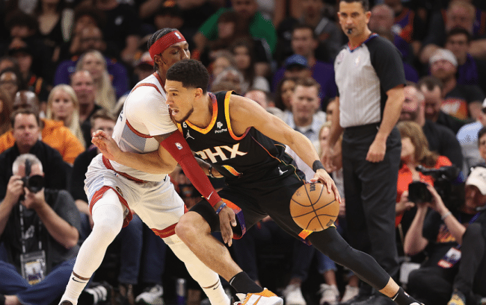 2、杜兰特和布克上半场合砍48分,成为过去25年赛季太阳队季后赛上半场得分最多的组合