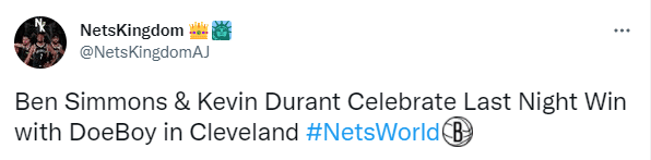 篮网击败骑士后,杜兰特和西蒙斯一起前往夜店狂欢。