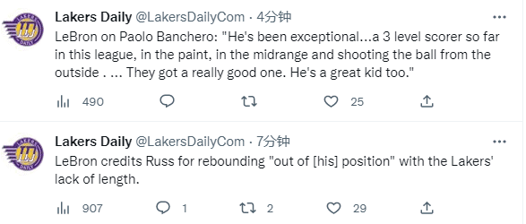 赛后,詹姆斯盛赞在湖人身高不占优势的情况下,威少在他的位置上为球队保护篮板。
