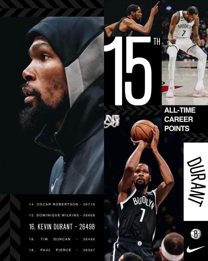 1、杜兰特常规赛总得分正式超越邓肯,独享历史第15位