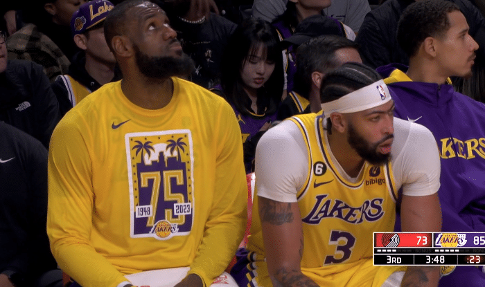 末节,詹姆斯助攻托马斯暴扣,外线突放冷箭再中三分,老詹助攻浓眉打成2+1,之后持球突破上篮2+1,被对手打到头部;老詹先后助攻里夫斯和浓眉轰进三分;湖人进攻流畅,詹姆斯命中个人第6记三分;开拓者反扑,关键时刻裁判吹罚詹姆斯对格兰特犯规,湖人挑战成功,浓眉连续在禁区得分,2分22秒,詹姆斯提前打卡下班,湖人换上替补,宣布比赛失去悬念。