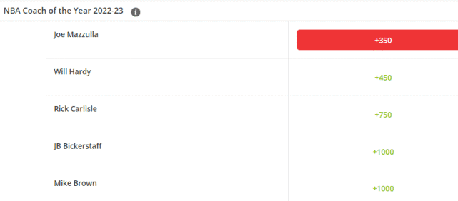 以临时主帅的身份,能带出联盟第一的战绩,越来越多人相信马祖拉有望成为凯尔特人的正式主帅,而禁赛中的乌度卡可能再也无法执教绿军。目前的年度最佳主教练赔率方面,马祖拉也力压其他主帅,排在第一的位置上。他已经成为这一奖项的头号热门。