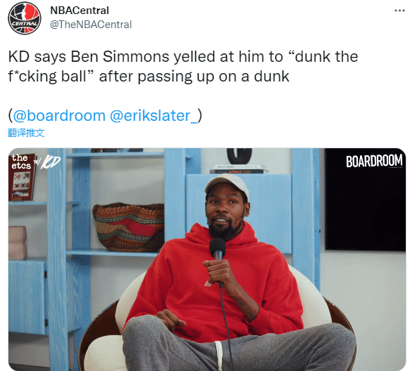 360直播11月25日,篮网球星杜兰特在自己的播客节目《Boardroom》中自曝西蒙斯曾对他大喊:你该把那个球扣进去;然后KD认错。