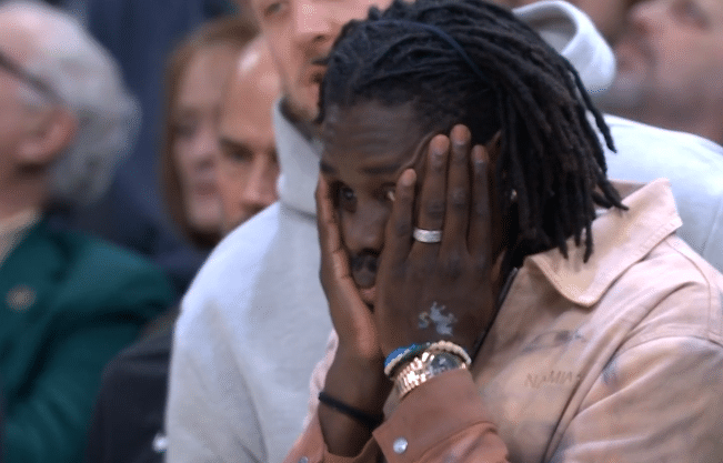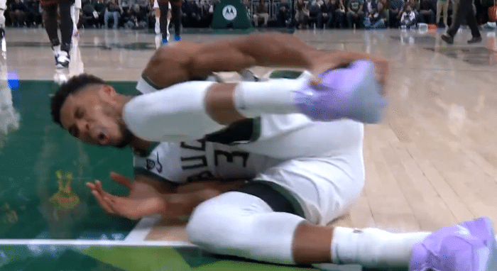 在雄鹿和老鹰比赛第二节9分多钟,字母哥在抢篮板时踩到杰伦-威廉姆斯的脚,导致左脚踝90崴脚,字母哥捂着脚踝痛苦倒地,雄鹿主场瞬间安静下来,现场的球迷都十分担心,霍乐迪双手抱头十分担忧,所幸字母哥缓了一会后站起来,并且留在场上继续比赛。