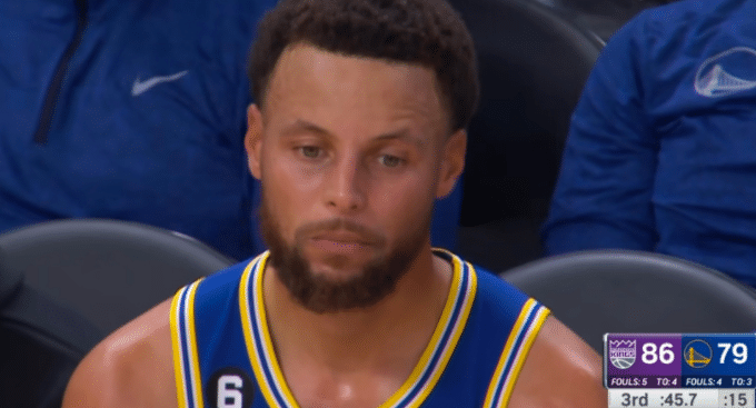 这场比赛期间,勇士一度打得很挣扎,看起来主场无力回天。包括库里在第三节的时候也在场边愣神,解说员霍楠都表示:“球队打得不好,库里的思绪都飘到场外了,想一些乱七八糟的事情。”
