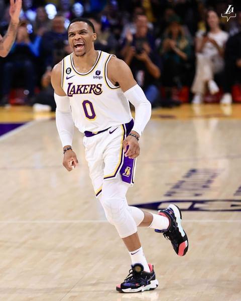 下半场,第三节开场詹姆斯得分后湖人全队哑火,长达3分多钟不得分,被骑士打出11-0的攻击波;威少上场后助攻浓眉暴扣止血,老詹发力接连又打进4球,可湖人再次陷入得分荒,第三节最后3分52秒0分,三节打完,湖人80-87落后7分。