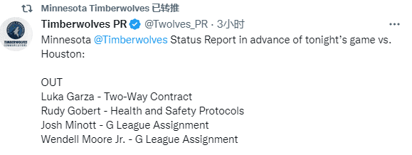 森林狼官方宣布球队中锋戈贝尔触发健康与安全协议,将缺席今日与火箭的比赛;另外卢卡-加尔扎、米诺特和小温德尔-摩尔也缺席比赛;戈贝尔又感染新冠吗?目前他已经触发防疫协议被隔离,值得一提的是,戈贝尔曾是NBA第一位确诊新冠的球员,并且导致联盟停摆。