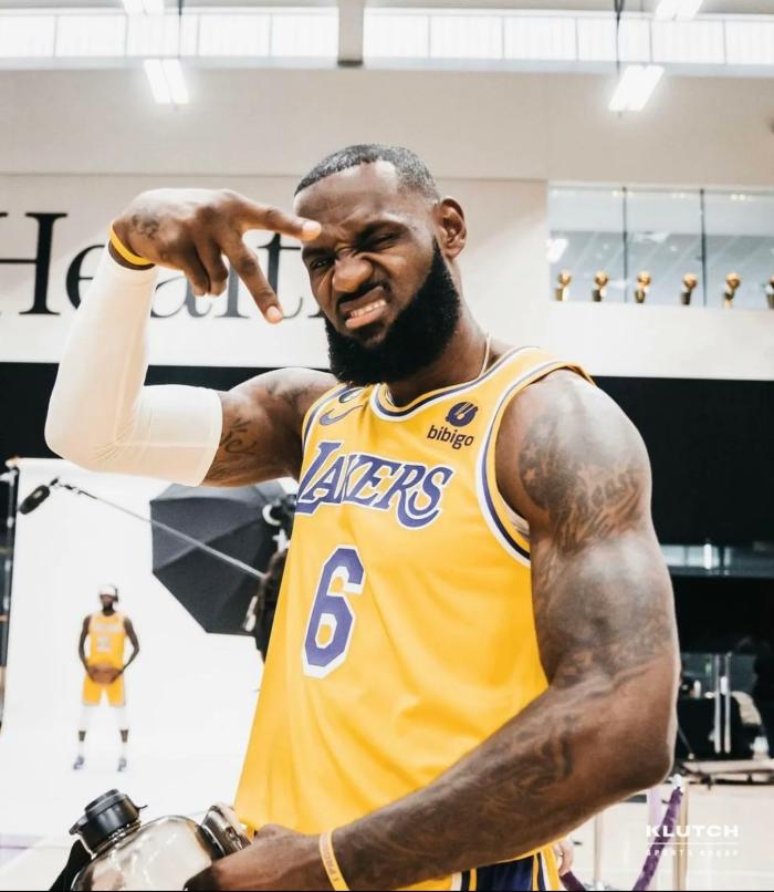 詹姆斯还在社媒上晒出戴着发带的表情——咬牙切齿露出充满狠劲的表情。