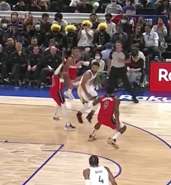赛前,库里热身时完成180度转身扣篮,库里又背扣了;据报道,比赛开始前75分钟,现场已经有超级多的球迷进场观看库里热身,库里人气太高了。
