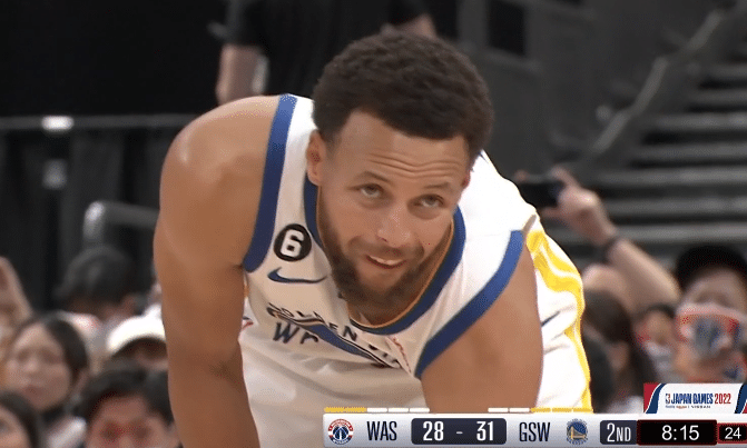 第二节,勇士和奇才僵持不下,期间怀斯曼连得5分(命中三分球),8分15秒库里重新上场,突破上篮得分;之后库里两次尝试三分都不中,甚至连篮筐都没碰到;不过库里迎着八村塁和波神强硬上篮,遭八村塁干扰球,之后篮下换手上篮,打着打着,库里三分再次开张,接连命中两记三分。