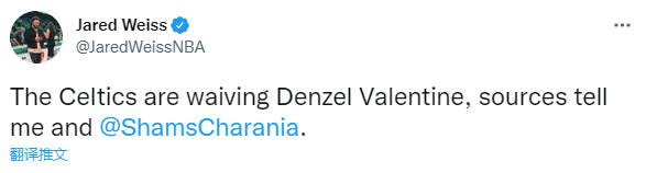 据TA名记Shams与Jared Weiss联合报道,消息人士透露,凯尔特人将裁掉前锋丹泽尔-瓦伦丁;此前他们双方签下了一份Exhibit 10训练营合同。