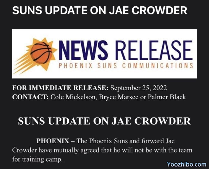 360直播09月26日,太阳官方正式宣布,球队已与克劳德达成不参加新赛季训练营的协议,克劳德将不会参加明日的媒体日和后天开启的训练营;之后克劳德发声告别太阳:感谢太阳,迎接新的挑战,99号很快回归。