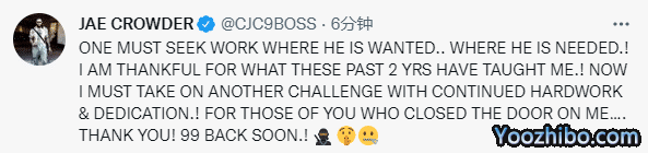 克劳德回应他将离开太阳的流言,发推写道:一个人必须得在需要他的地方工作。我很感激这两年球队教给我的东西。现在我必须继续努力和奉献,接受另一个挑战。对于那些拒绝我的人,我谢谢你们,99号很快就会回来的。