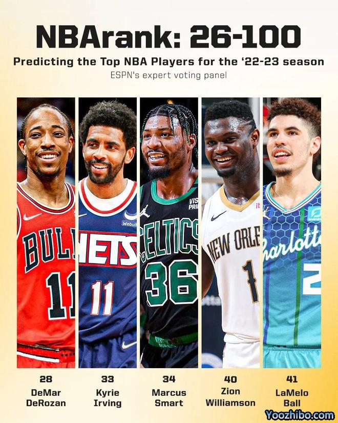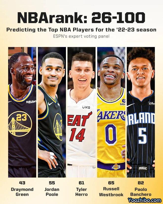 360直播09月24日著名NBA媒体ESPN评出了一年一度的NBA新赛季百大球员,今日放出了100-26的球员,具体排名如下: