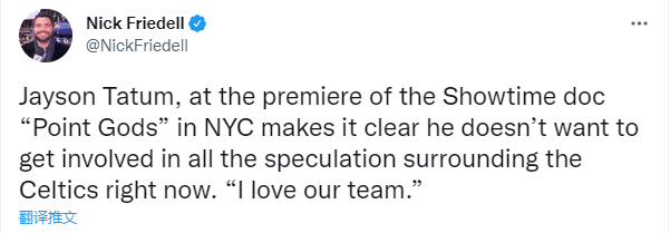 塔图姆还表示:我什么都不相信,我只是打篮球,我不相信我在电视上看到的一切,我看到过关于我的谣言,所以你永远不知道什么是真的。