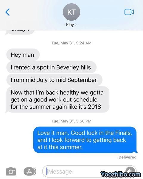 享受休赛期的同时,汤普森早已安排好了今夏的训练,美国训练师Ben Bruno晒出汤普森的训练计划,汤普森给训练师发短信,写道:嘿兄弟,我预定了比弗利山庄(加州城市)的一个位置,从七月中旬到九月中旬。现在我恢复健康了,这个夏天我们要将训练提上日程,就像2018年那样。