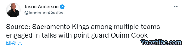 据国王记者Jason Anderson报道,国王有意签下湖人和勇士旧将奎因-库克,但他们并不是唯一对库克感兴趣的球队,已有多队与库克展开过对话;目前库克的前景仍不明朗,但他可能很快就会找到新东家,回归NBA。
