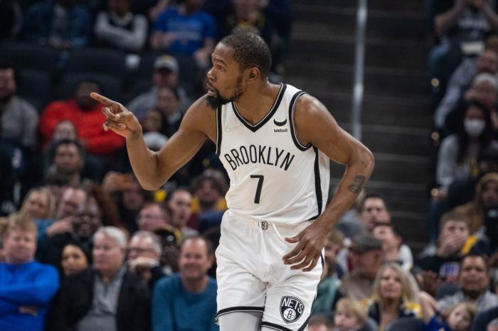 2021-22赛季,杜兰特为篮网出战55场常规赛,场均29.9分7.4篮板6.4助攻,季后赛投篮失准,场均26.3分但投篮命中率38.6%、三分命中率33.3%,首轮0-4被横扫耻辱出局。