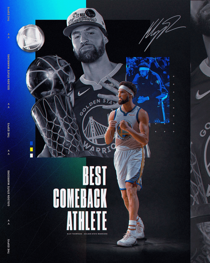 360直播07月21日讯 ,在ESPY颁奖典礼上,勇士斩获四项大奖;库里不仅担任主持人,而且连续夺得多个年度大奖,为自己颁奖;汤普森获得最佳复出大奖,勇士队获得最佳团队奖。第一、库里夺得ESPY年度最佳NBA球员奖