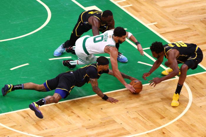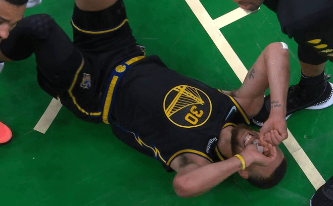 末节库里上场后接连出现3次失误,凯尔特人趁机扩大领先,库里命中大号两分,但塔图姆和布朗双探花又带队领先到两位数;比赛继续,库里、斯玛特等多名球员倒地拼抢地板球,期间库里的腿被霍福德压住,倒地十分痛苦;格林再次6犯毕业,一番对阵,最终勇士输掉比赛,期间库里被撞到肋骨。