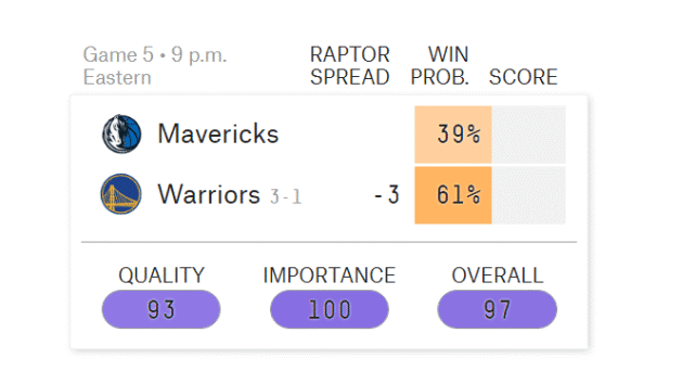 知名数据网站FiveThirtyEight更新了G5的获胜概率。勇士获胜概率是61%,独行侠是39%。大家认为这会是西决的最后一场比赛吗?