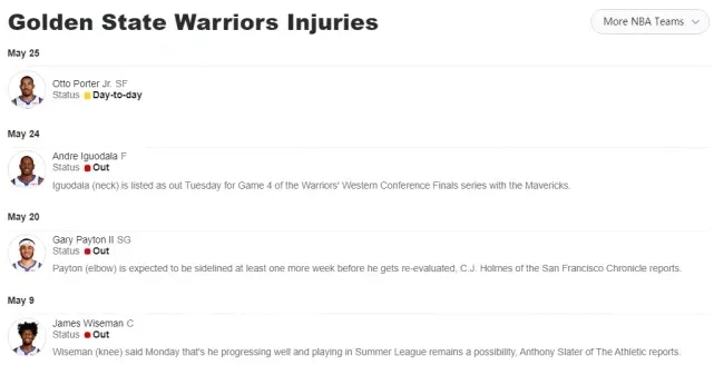 360直播05月26日讯 ,勇士和独行侠将在明天迎来G5大战,最新伤情已经出炉。独行侠一方还是老样子,小哈达威因左脚手术继续缺阵,勇士一方,除了确定缺席的小佩顿(左肘骨折)、伊戈达拉(颈椎伤病)、怀斯曼(右膝伤病),波特处于每日观察的状态,出战成疑。