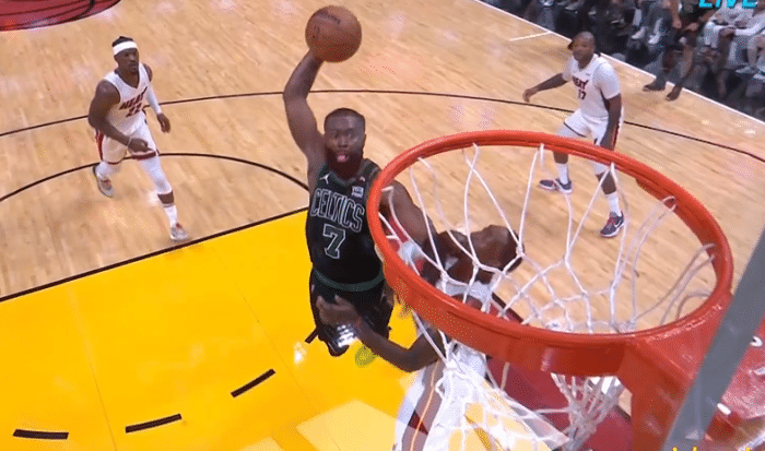 360直播05月26日讯 ,凯尔特人做客93-80击败热火,攻占天王山,3-2拿到赛点。此役前两节半双方打得非常惨烈,防守大战中谁也无法拉开比分。但从第三节末段开始,凯尔特人开始爆发,轰出了一波24-2的超级攻击波,一举奠定胜局!布朗末节上演死亡隔扣,技惊四座!