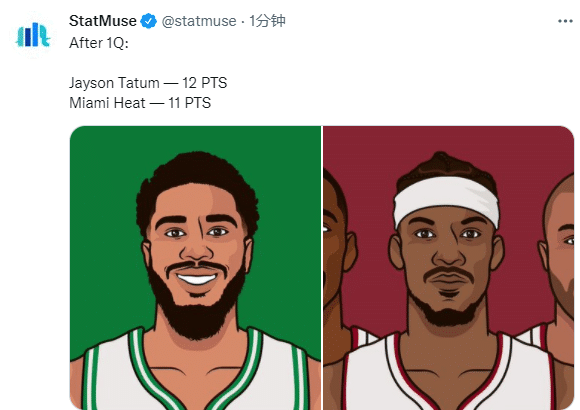 东决G4正式开打,怀特开场连得7分助凯尔特人火热开局,之后热火继续不断打铁,塔图姆输送火力,绿军18-1太疯狂,热火全队前14次出手全都打铁;第一节3分22秒,奥拉迪波投进三分球,热火终于打进本场第一记运动战进球,首节打完落后18分,全队仅得11分,20投3中太扎心。