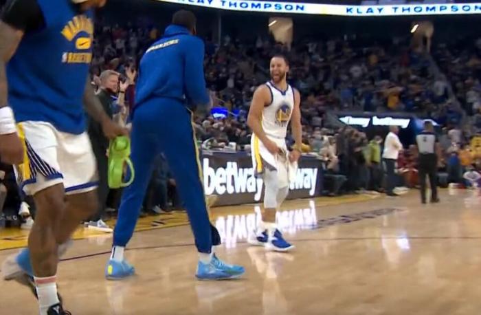 其中最开心的,毫无疑问就是库里。作为水花兄弟的一员,库里看到汤普森这记回归宣言式的暴扣,激动地在后场飞奔,蹦蹦跳跳乐得就像个孩子。与此同时,原本坐着的主帅科尔看到汤神暴扣后,也直接起身握拳怒吼,为弟子送上祝贺。汤神、库里和科尔,从来都是相互成就,他们不但是师徒,更是朋友。