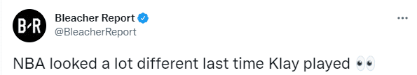 360直播01月09日讯 ,勇士球星克莱-汤普森正式宣布复出,时隔941天终于确定复出,勇士官方直言等待终于结束;那么汤普森缺席期间,联盟发生了哪些变化?美媒B/R晒照并且发推写道:上次克莱出场时,NBA看起来和现在大不相同。