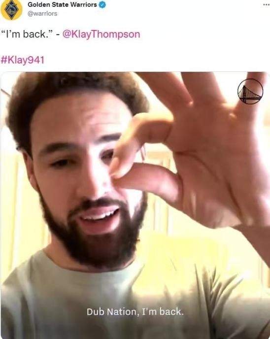 360直播01月09日讯 ,勇士球星克莱-汤普森在日常训练结束后,在个人社交账号上宣布他将在10日,也就是明天,勇士客场挑战骑士的比赛中复出!勇士官方随后立即发布消息确认克莱-汤普森的复出,有意思的是克莱-汤普森在训练时并没有显示出回归球场应该有的兴奋,他就像平时一样,正常训练结束后和教练组的人员拉了15分钟的家常,然后漫不经心地走回更衣室,发布了这条重磅新闻。只能说这样的方式太克莱-汤普森了,科尔此前面对媒体采访时还含糊其辞,并未正面回应克莱-汤普森的复出时间,虽然知道近期克莱-汤普森将迎来回归,准确的官方消息来得却有点突然,让勇士球迷惊喜了一下。