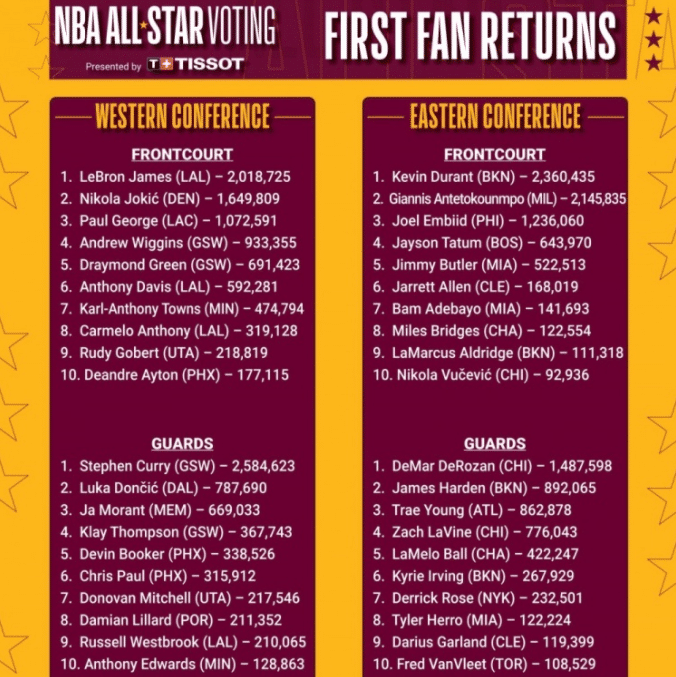 360直播01月08日讯 ,是2022年NBA全明星投票的双倍计票日,也就是说球迷的每一票都双倍计入,这样的情况下NBA的球员们、球队都在呼吁球迷们投票,其中包括詹娜呼吁给自己的男友投票,要知道詹娜的粉丝基数是非常庞大的。还有篮网为哈登拉票,勇士为库里、追梦格林等人拉票。湖人为詹姆斯拉票等等,大家都希望自己的球员可以进入到今年的全明星正赛阶段。