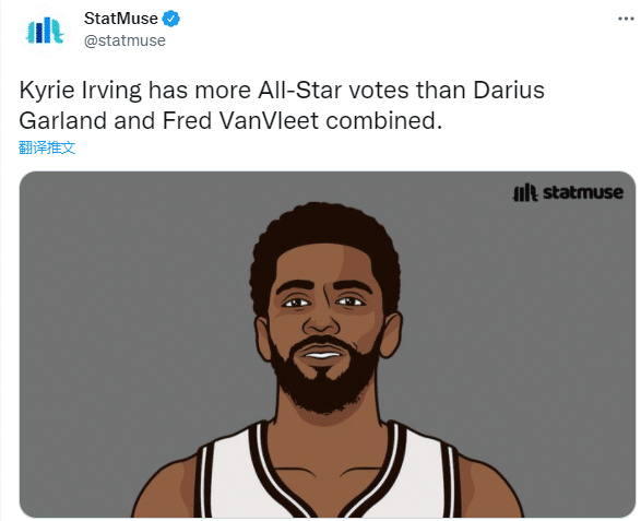 赛季至今,欧文仅仅为篮网打了一场比赛,此前连续缺席35场比赛,即使发生一些闹剧,欧文仍旧是无数球迷的喜爱,美媒StatMuse发推写道欧文的得票数比加兰和范弗利特两人之和还多。