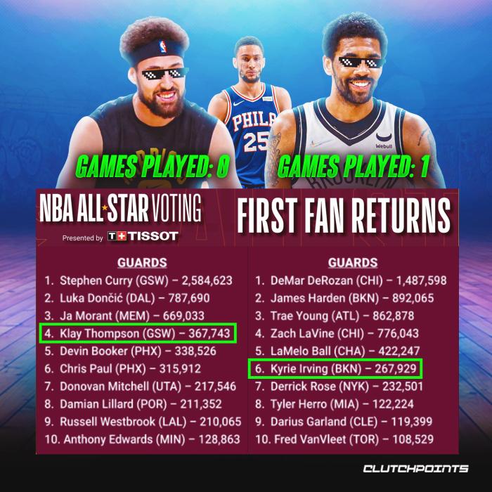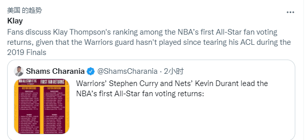 全明星第一轮投票结果引热议,克莱-汤普森和欧文是引起争议最大的两人,其中汤普森冲上推特热搜榜。