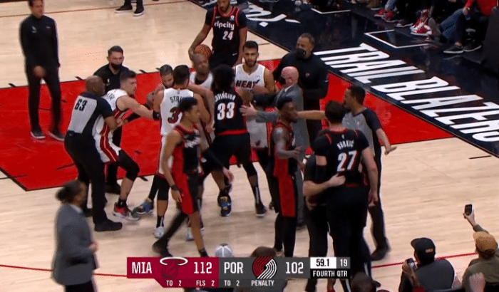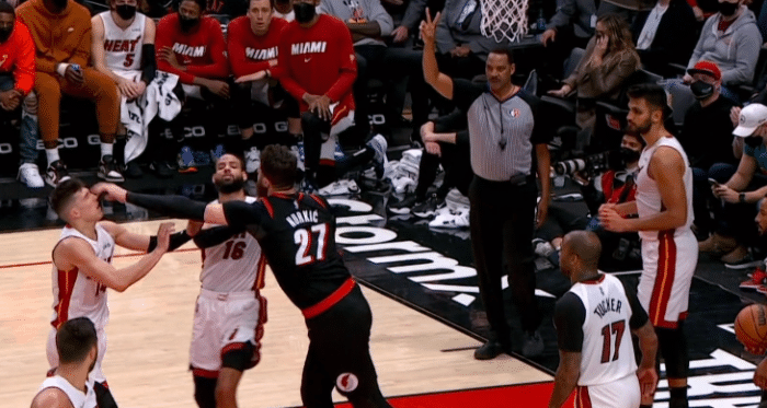 360直播01月06日讯 ,在热火和开拓者比赛的最后时刻,场上发生火爆冲突,努尔基奇和希罗碰撞之后,希罗从背后推搡努尔基奇,后者回身并且打到希罗的头部,最终两人都被驱逐离场。