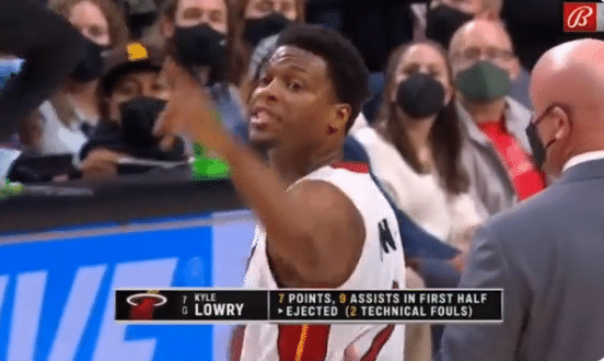 本场比赛,热火核心后卫洛瑞也被驱逐离场,他因把球扔给裁判,貌似砸到裁判吃到第二次技术犯规,累计两次技犯被驱逐,上场16分钟4投1中拿到7分9助攻2篮板,离场时,洛瑞朝着裁判宣泄情绪,骂骂咧咧地离开球场。