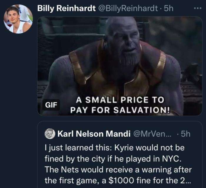 如果单纯的交钱就能上场打球,应该蔡老板会考虑与欧文洽谈的。前提是看到欧文状态不错,能切实地帮助到球队,并且不再搞其他事。不得不说缺少欧文的篮网还是有一定缺陷的,如果他一直坚持不打疫苗,那对篮网的影响很大,尤其是打一些关键场次和季后赛比赛。